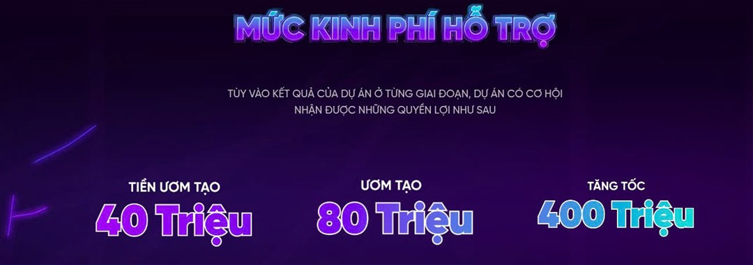 Mức kinh phí cho dự án Tiền Ươm tạo là 40 triệu VNĐ
