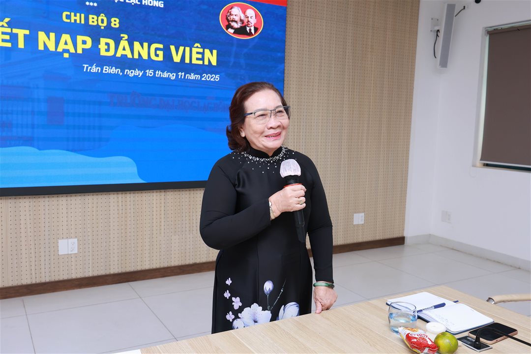 Phát biểu tại buổi lễ, đồng chí Nguyễn Thị Thu Lan – Bí thư Đảng ủy, Phó Hiệu trưởng nhà trường chúc mừng hai đoàn viên sinh viên ưu tú đã vinh dự được đứng vào hàng ngũ của Đảng Cộng sản Việt Nam. Đồng chí nhấn mạnh, đây là niềm tự hào không chỉ của cá nhân các đồng chí đảng viên mới mà còn là niềm vui chung của toàn thể Đảng bộ Trường Đại học Lạc Hồng. Chúc các đồng chí luôn giữ vững lý tưởng, phát huy tinh thần tiên phong, gương mẫu của người đảng viên trẻ; không ngừng rèn luyện, học tập và cống hiến vì sự phát triển của Nhà trường và đất nước. Đồng thời, đồng chí đề nghị các Chi bộ, Đoàn Thanh niên và Hội Sinh viên Nhà trường tiếp tục quan tâm, bồi dưỡng, tạo điều kiện để ngày càng có thêm nhiều sinh viên ưu tú được đứng vào hàng ngũ của Đảng.