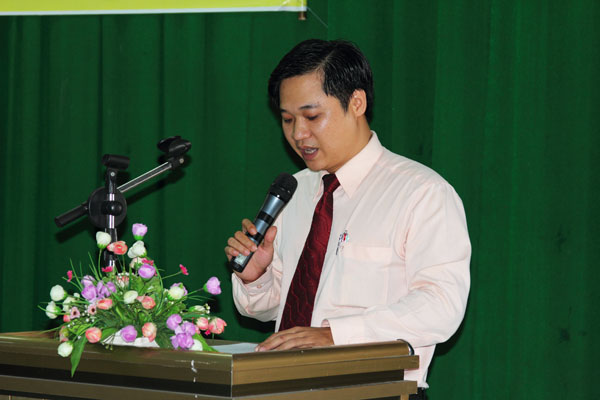 Rector Tran Hanh speaks at the ceremony.