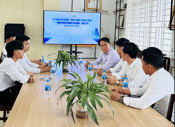 Chiều ngày 11/12/2025, Khoa Cơ điện – Điện tử đã tổ chức lễ trao học bổng “Khát vọng thành công” cho 09 sinh viên có thành tích học tập tốt và hoàn cảnh khó khăn vươn lên. Chương trình do doanh nghiệp và cựu sinh viên tài trợ hằng năm, góp phần tiếp thêm động lực để sinh viên yên tâm học tập.