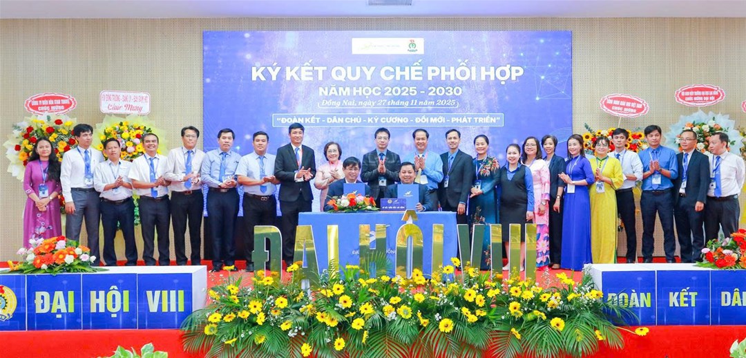 Hội nghị đã ký kết Thỏa ước lao động tập thể - Quy chế phối hợp giữa Nhà trường và Công đoàn năm học 2025 - 2026.