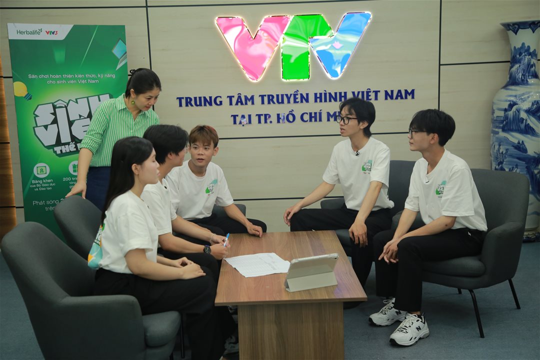 The team meeting and discussing directly at Vietnam Television to finalize the implementation topic.