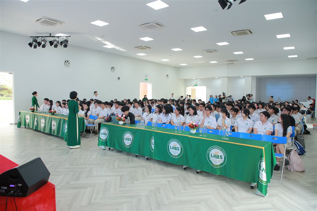 The team sharing their project at Lac Hong Bilingual School.