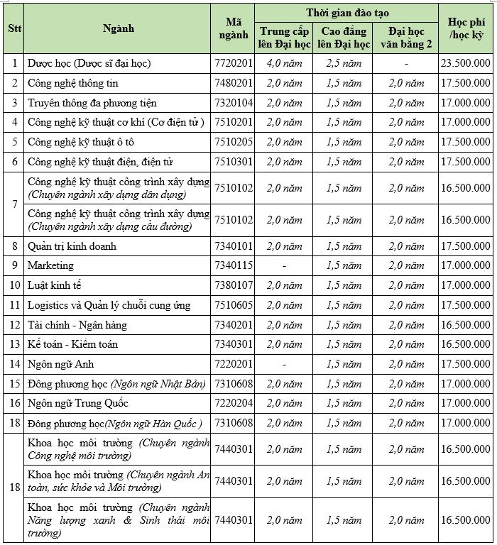3. Học phí và mốc thời gian tuyển sinh xem thông báo chi tiết l